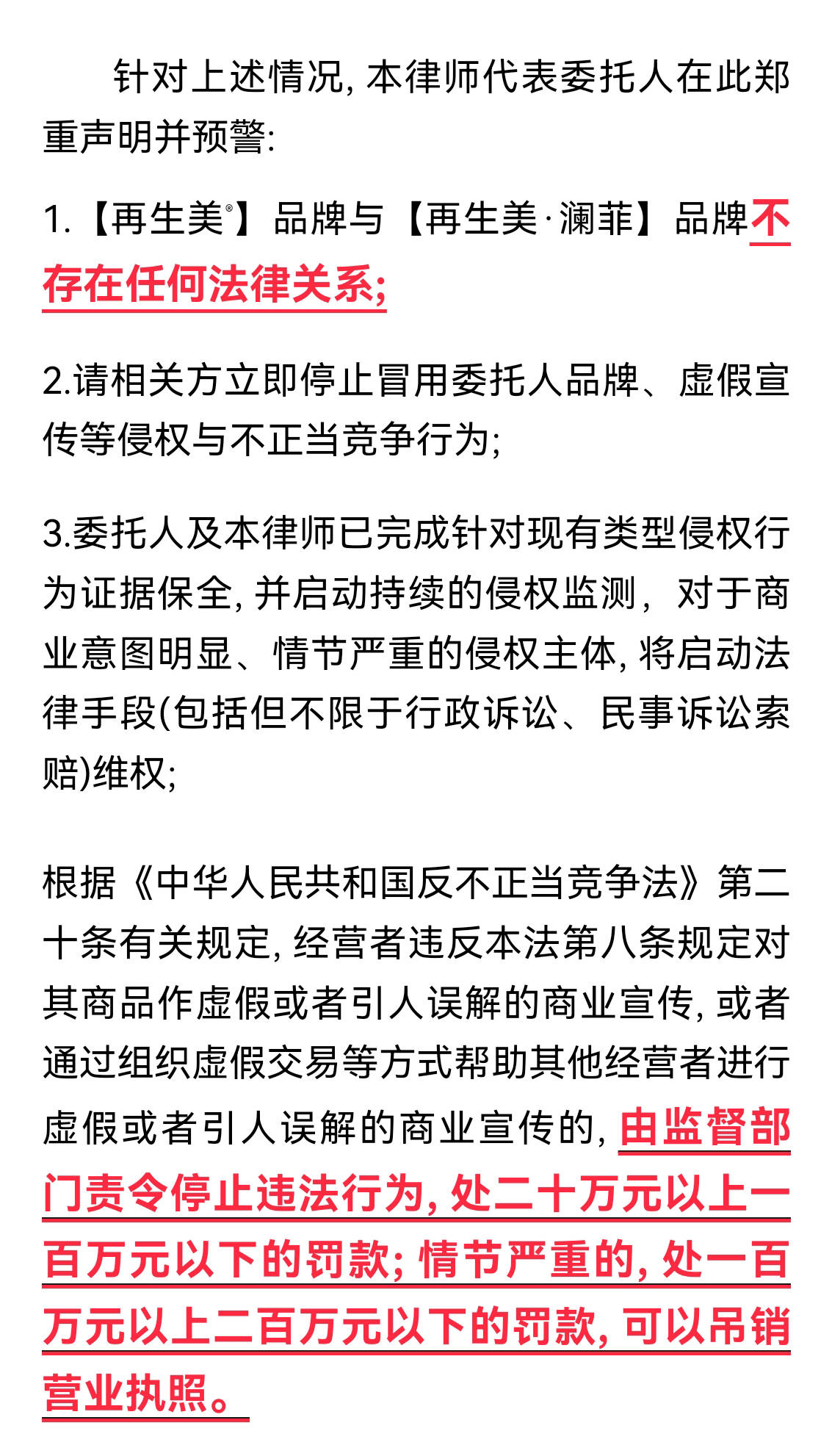 再生美打假声明:法网恢恢,疏而不漏!并携手上海协力律师事务所维权